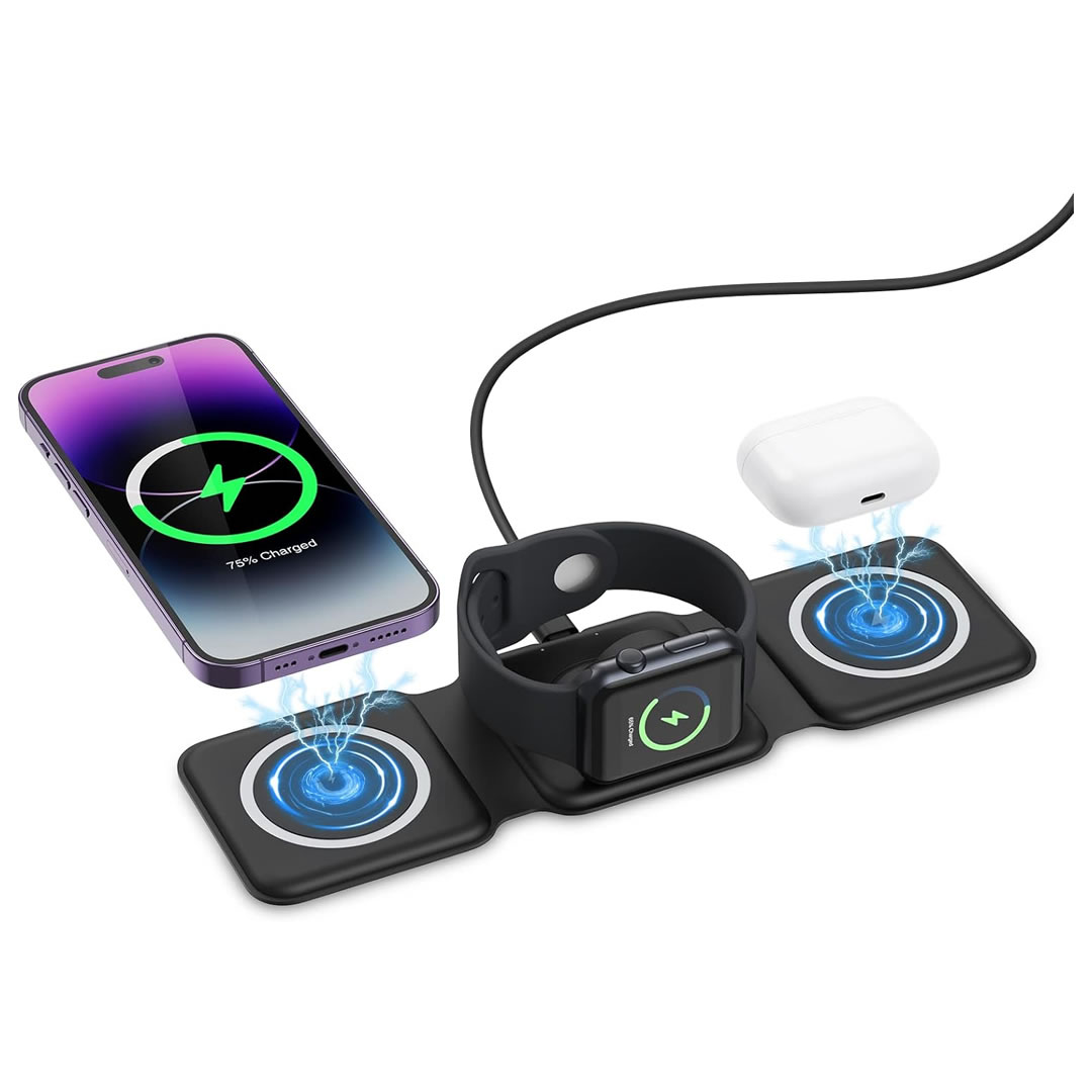 Cargador Magnético Plegable de Carga Inalámbrica Rápida Qi2.0 3 en 1 Portátil.